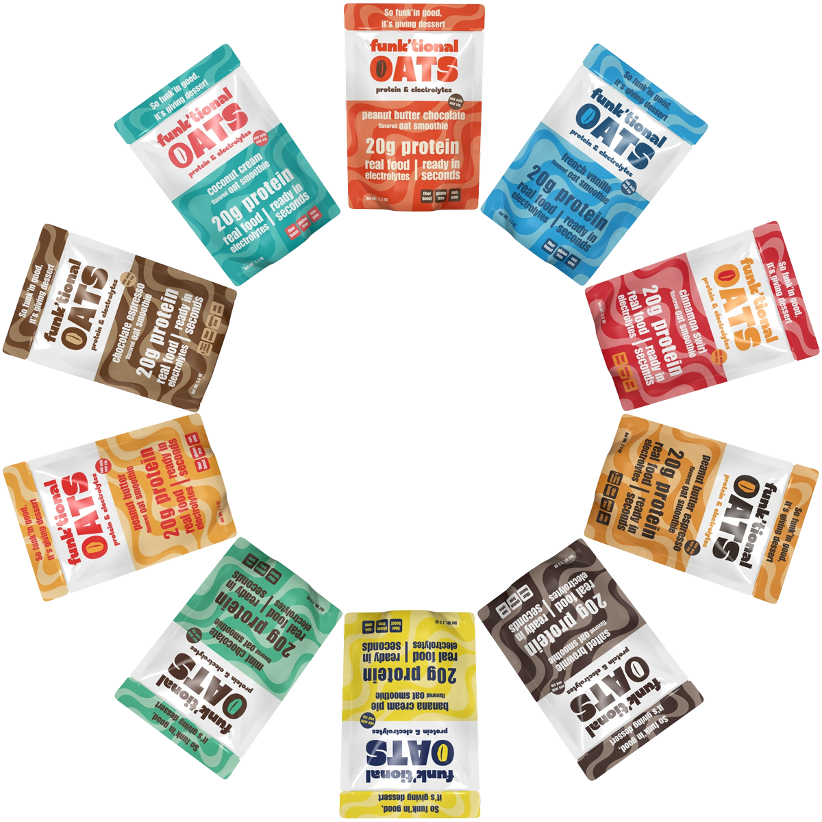 The base never changes: 7 real-food ingredients, no fluff. Oats carry the crown, but the whole squad shows up.